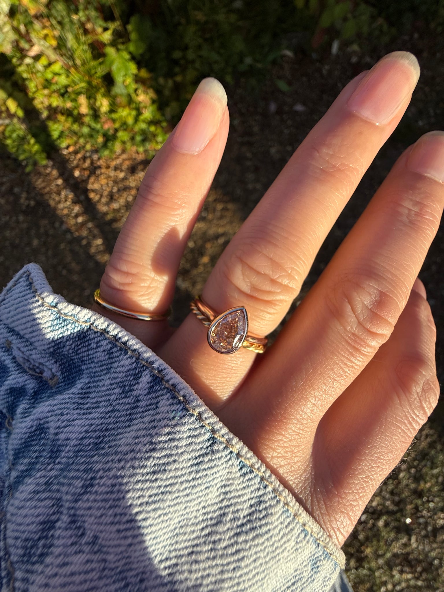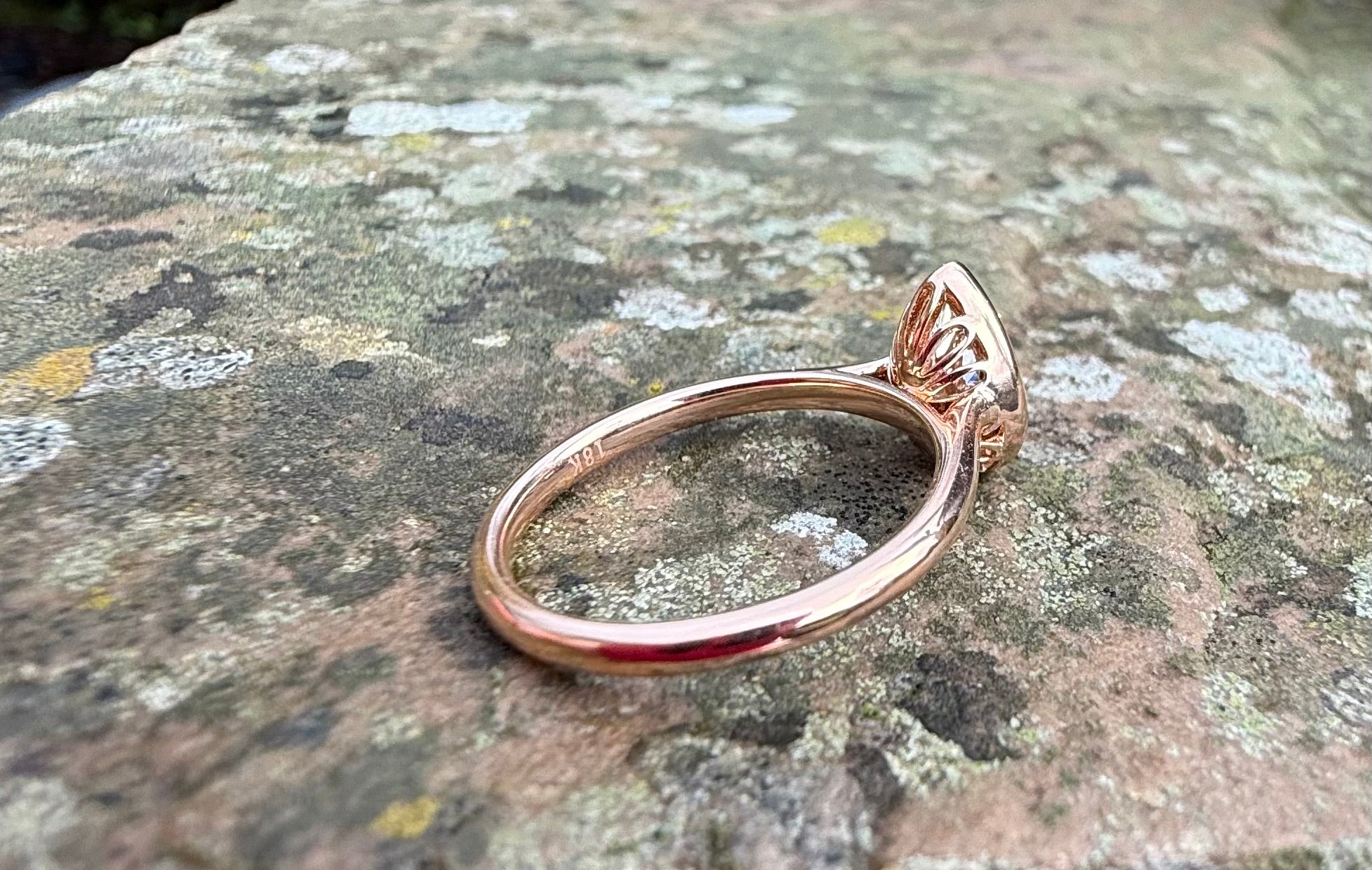 This is a wonderful 1.2 carat VVS natural diamond with pale - pinkish brown hues. We’ve enhanced the unique colour by encasing it in an 18ct rose gold bezel.